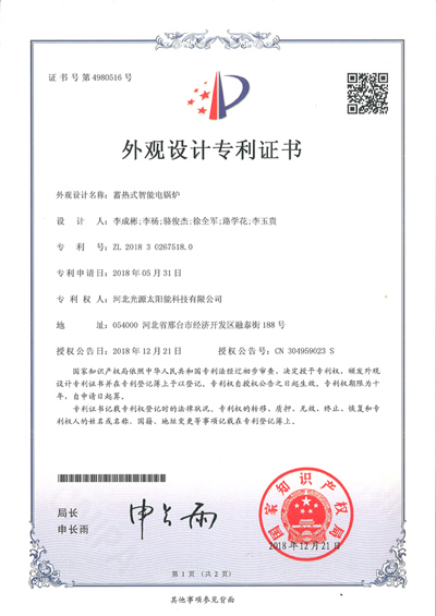 实用新型专利证书--高可靠智能蓄热电采暖供热系统