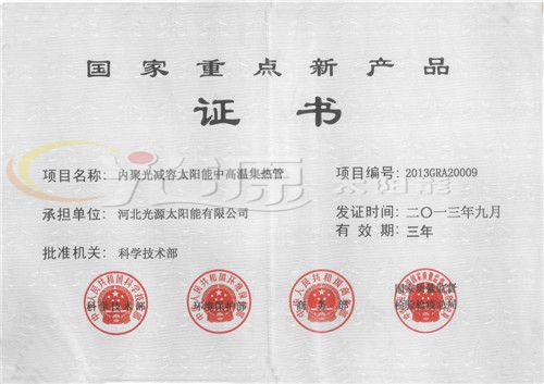 国家重点新产品证书