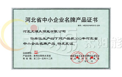 中小企业名牌产品证书
