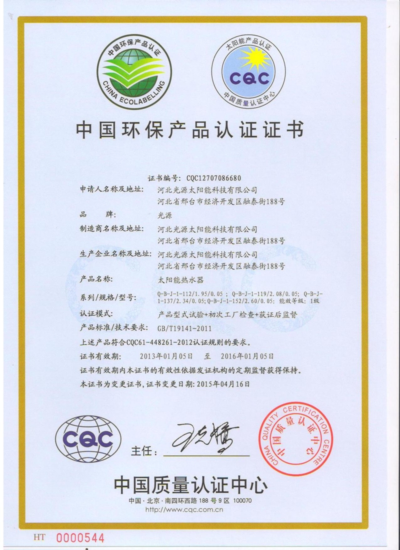 中国环保产品认证证书