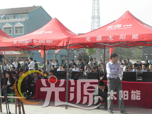 广场的一侧,光源银月亮、浴美人系列太阳能列队排开,漂亮的机型,明码标价的质优价廉产品,吸引了广大老百姓驻足凝神观看!实实在在的优惠政策,在加上工作人员耐心细致的讲解,广大老百姓纷纷踊跃定机!