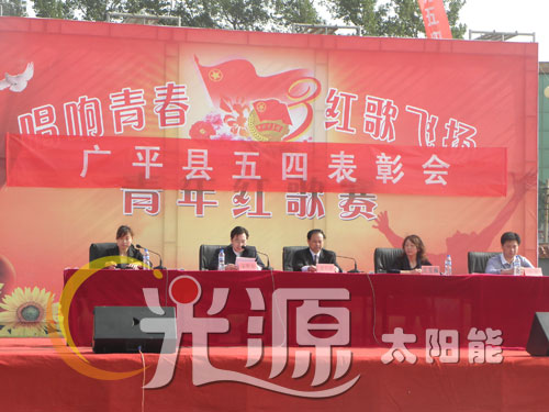 2011年5月4日,值此五四青年节到来之际,由邯郸市广平县政府主办,光源太阳能赞助的“光源杯”青年红歌赛在广平县文化广场隆重举行!