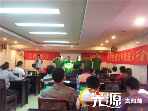 9月12日,光源太阳能安徽亳州招商会成功举行?;岢“诜帕斯庠囱嗝拦鄣耐庑?,结实耐用的支架及合理的产品设计,得到与会经销商的赞扬。