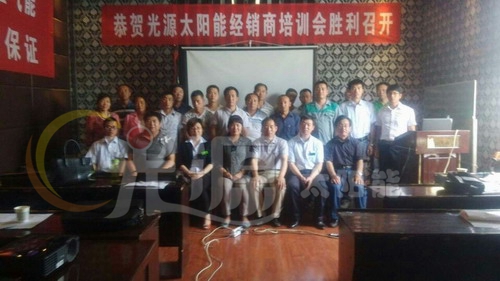 5月28日,光源公司延安优秀经销商培训大会如期举行。在当前的热水器市场上,太阳能热水器以环保、经济等特点受到欢迎,但同时,同类产品层出不穷,诸如电热水器、燃气热水器、空气能等同功能产品也进入消费者的生活中。如何做,才能在市场上稳扎稳打。光源公司本着以质量占领市场,以情怀奉献市场的理念,邀请了延安经销商二十余家,举行了一场别开生面的营销培训会。这些经销商与公司配合密切,他们分别在各自的“家门口”取得了优良的战果。不用多言,看笑颜便知其中。