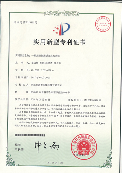 实用新型专利证书--一种太阳能采暖及热水系统(2)