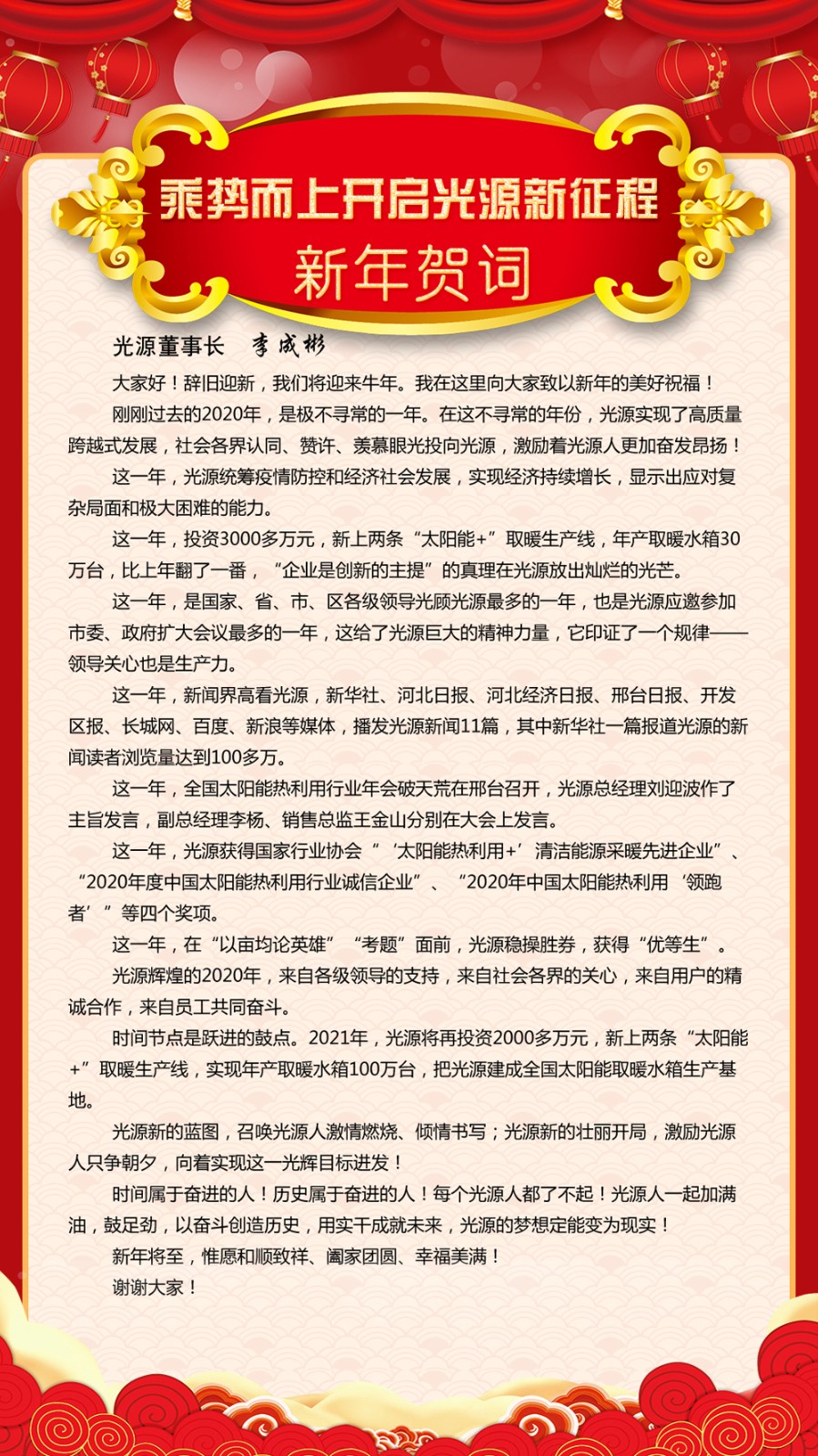 Copyright(C)2021 河北光源太阳能 E-mail: hbguangyuan@163.com 地址: 邢台经济开发区王快镇北屋村永安路2199号 关于光源 | 公司动态 | 联系我们 | 法律声明
