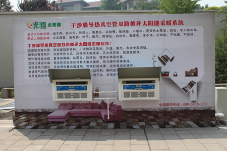 一直以来,已有太阳能采暖系统存在的制造成本高、初装投资大、冬季冻害导致系统破坏,夏季热水过剩导致系统结垢,系统循环热损大、互补能源耗能高、能源转换启动慢、室内散热效率低等共性问题,河北光源太阳能有限公司开发了“干涉膜内导热真空管双回路循环无联箱太阳能采暖系统”,按照技术创新驱动,面向市场需求,研发产品适用、高质量、低成本、性能稳定、指标先进的思路,形成的新技术、新产品、新材料,是对光源自有知识产权精髓的优化整合,创新集成。