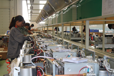 生产车间:不断改进工艺,合理安排人员,逐步提高生产效率,电锅炉日生产能力由150台提高到了400台。壁挂炉日产可达300台。