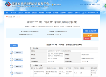 喜讯!喜讯!光源公司中标南宫市2019年“电代煤”采暖设备招标项目