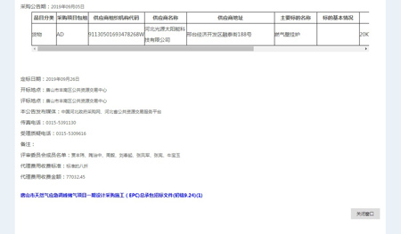 奋力拼搏创佳绩,捷报频传奏凯歌。河北光源太阳能科技有限公司,在2019年09月27日,唐山市丰南区2019年第二批气代煤燃气壁挂炉及电代煤电取暖设备采购及安装项目A标包第四标段中标,为我公司2019年度辉煌的经营业绩再添浓墨重彩的一笔。