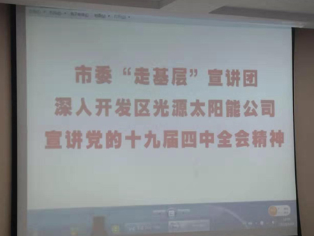 12月3日市委“走基层”宣讲团一行6人到开发区光源太阳能科技有限公司,宣讲党的十九届四中全会精神。